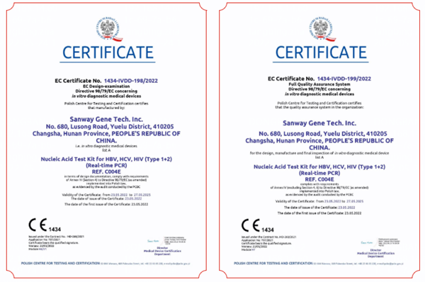5月23日,350vip浦京集团生物全资子公司圣维基因研发的乙型肝炎病毒、丙型肝炎病毒、人类免疫缺陷病毒(1+2型)核酸检测试剂盒(PCR-荧光法),简称血筛核酸检测试剂盒,成功通过欧盟公告机构认证(CE List A),这是继乙肝、丙肝和艾滋三款核酸检测产品后,350vip浦京集团生物拿下的第四个CEList A认证。